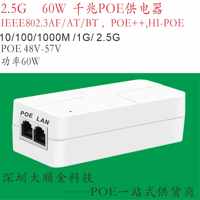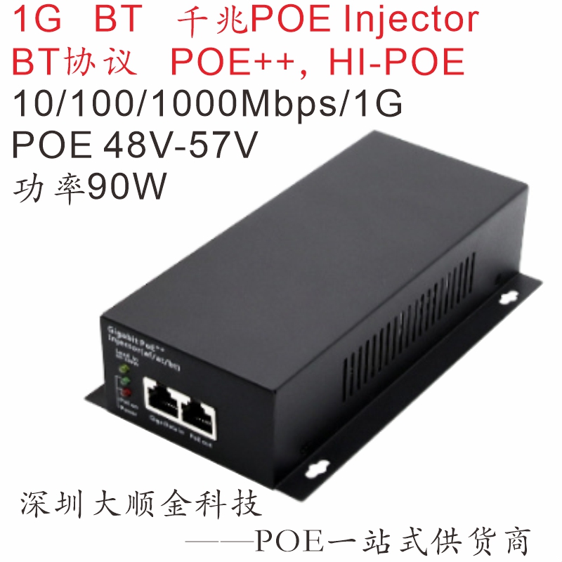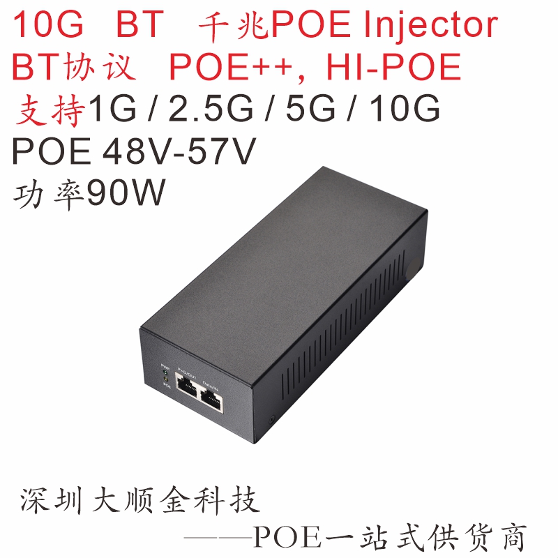 90W 10G POE injector/千兆POE注入器/10G poe++ Injector;90W POE供电器,60W POE供电模块;10G PoE++ Injector, 1G/2.5G/5G/10Gbps,802.3af/at/bt;AT/BT POE,2.5G/10G深圳大顺金科技POE注入器,2.5G/10G POE++ Injector 60W/90W HI-POE, BT 10G 90W POE注入器/injector;90W poe++ INJECTOR;
